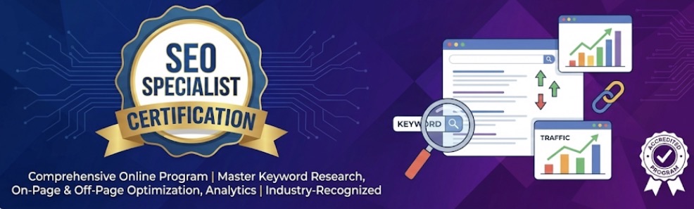 A comprehensive, industry-aligned SEO program designed to take you from beginner to job-ready SEO professional. This course covers the complete modern SEO stack—including search engine optimization fundamentals, AI search integration, keyword research, technical SEO, on-page and off-page SEO, content strategy, analytics, and full-funnel SEO implementation using industry-standard tools and frameworks.